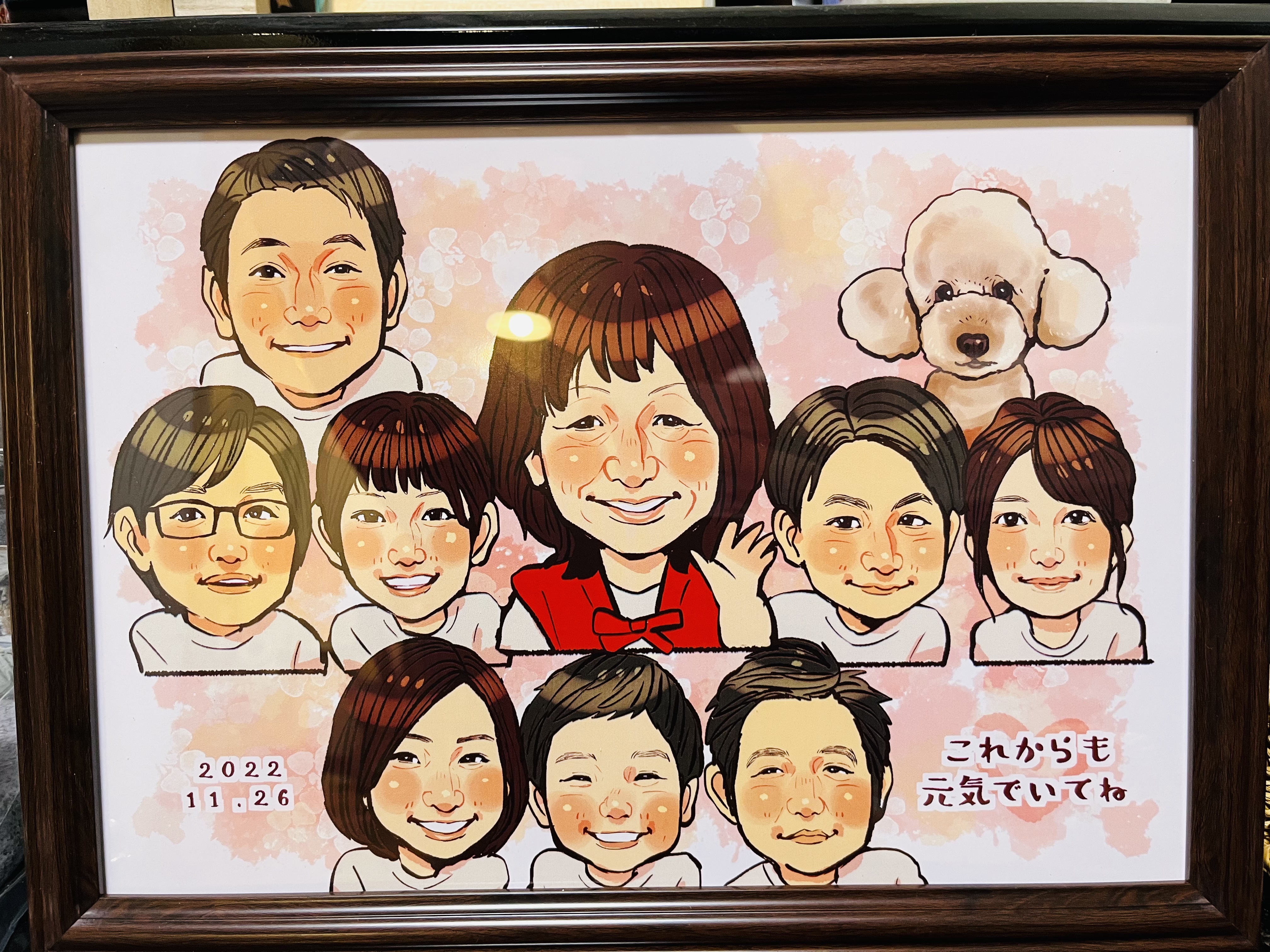 似顔絵を書いてもらう機会ってなかなかないので、写真で注文できてフレームまで付けていただけるので、とても良い記念になりました!