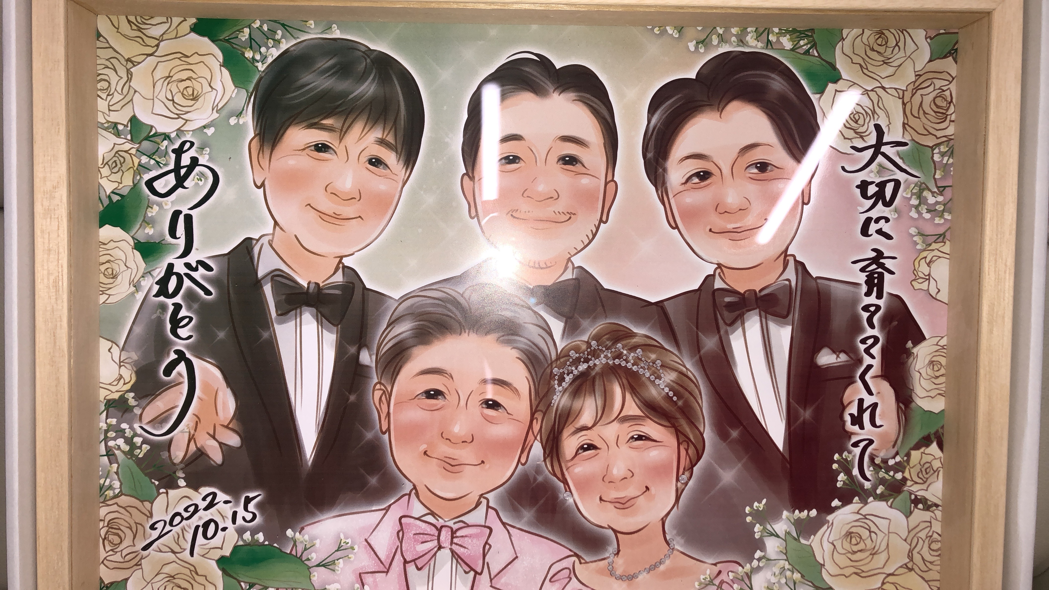 両親の結婚記念日のプレゼントにと思い注文させていただきました。 初めての注文だったので正直心配なところもありましたが、とても満足です! 両親がとても喜んでくれました! 額縁もセットになっているのでそのまま飾れました! 笑っちゃうくらいそっくりな絵にみんなで驚き、笑顔になりました! 家族のとても良い思い出の日になりました! 素敵な絵をありがとうございました!