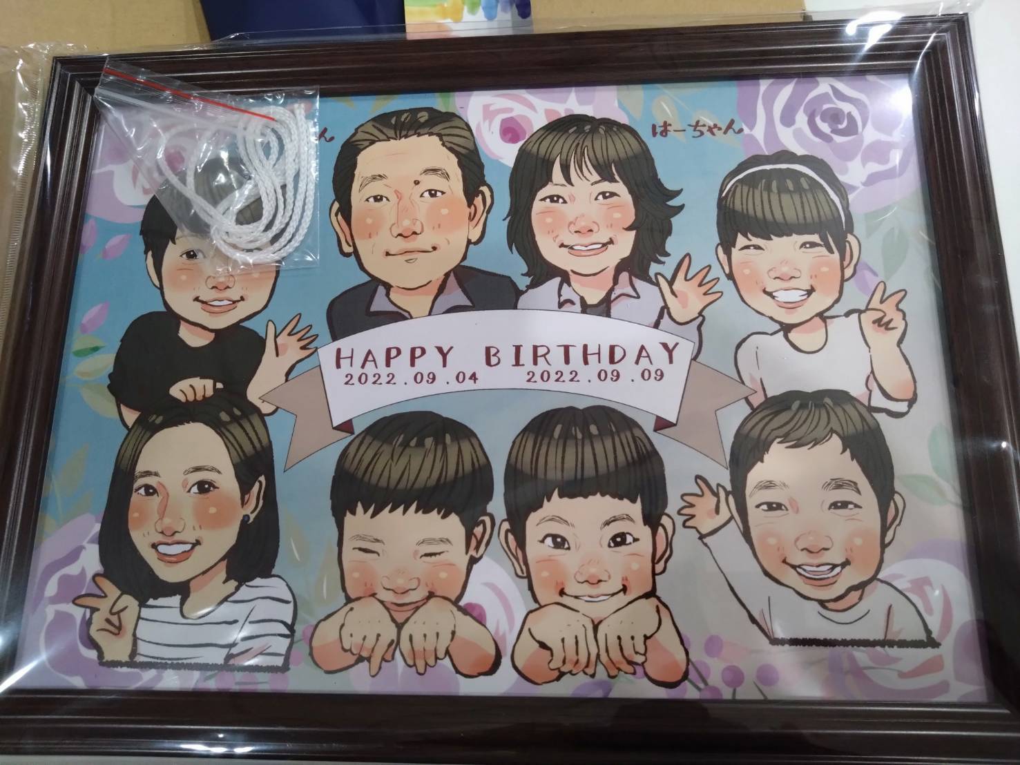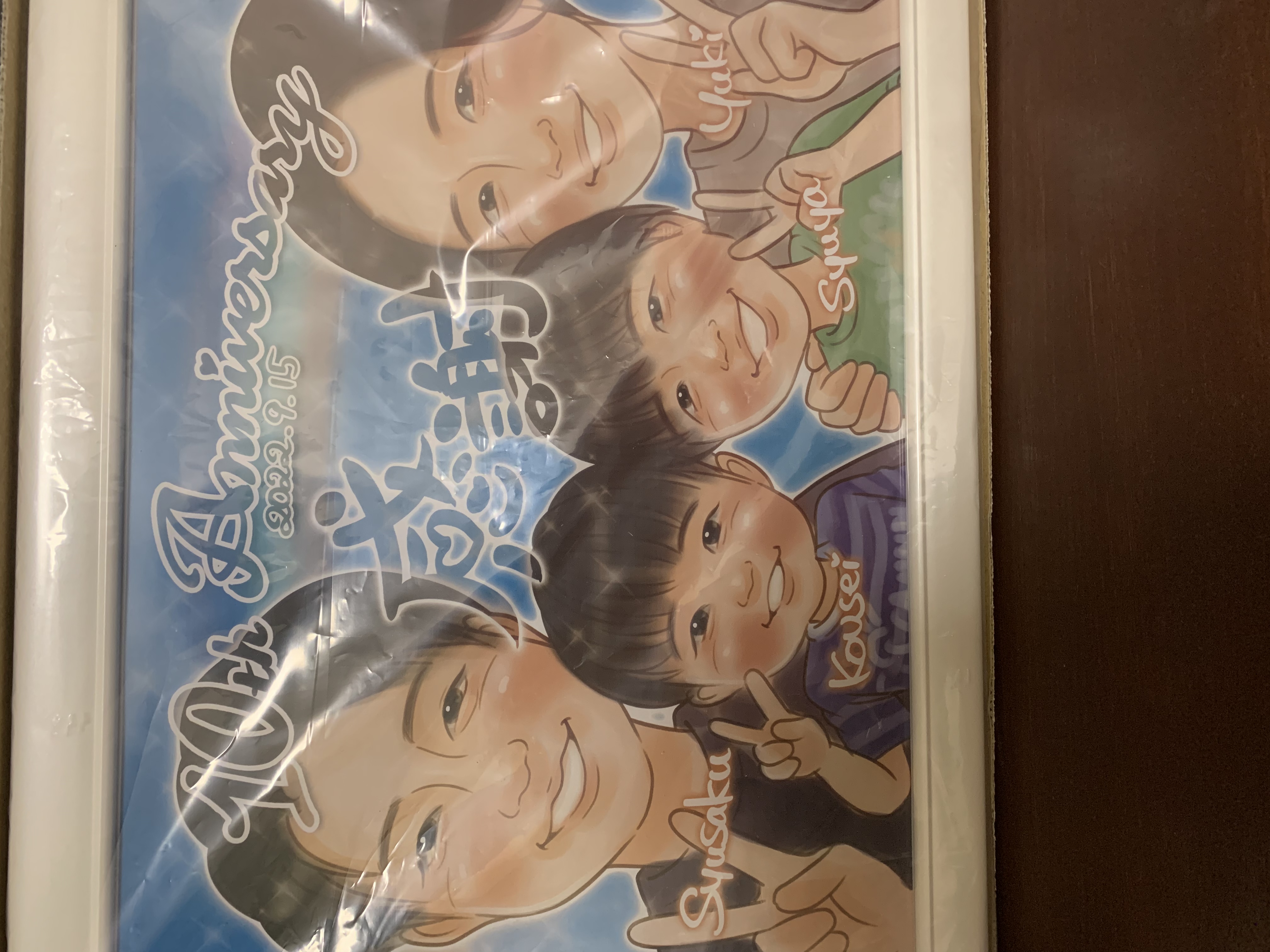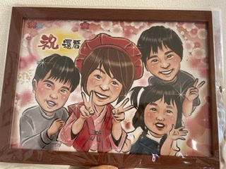無事に到着しました。 初めての似顔絵注文。 他のお店では1ヶ月程かかるのに、制作日数も早くて大丈夫かな?と心配しながらも誕生日に間に合わないので注文。 注文の時に大体の情報は入力したけど素人がうっかり入力し忘れた情報の確認もLINEでしてくれてその上細かい注文も受けていただいて誠実な対応に安心しました。 その上出来上がった絵はみんな似てる❗ イメージ通りの仕上がりに満足です。 またこちらにお願いしようと思います。 ありがとうございました。