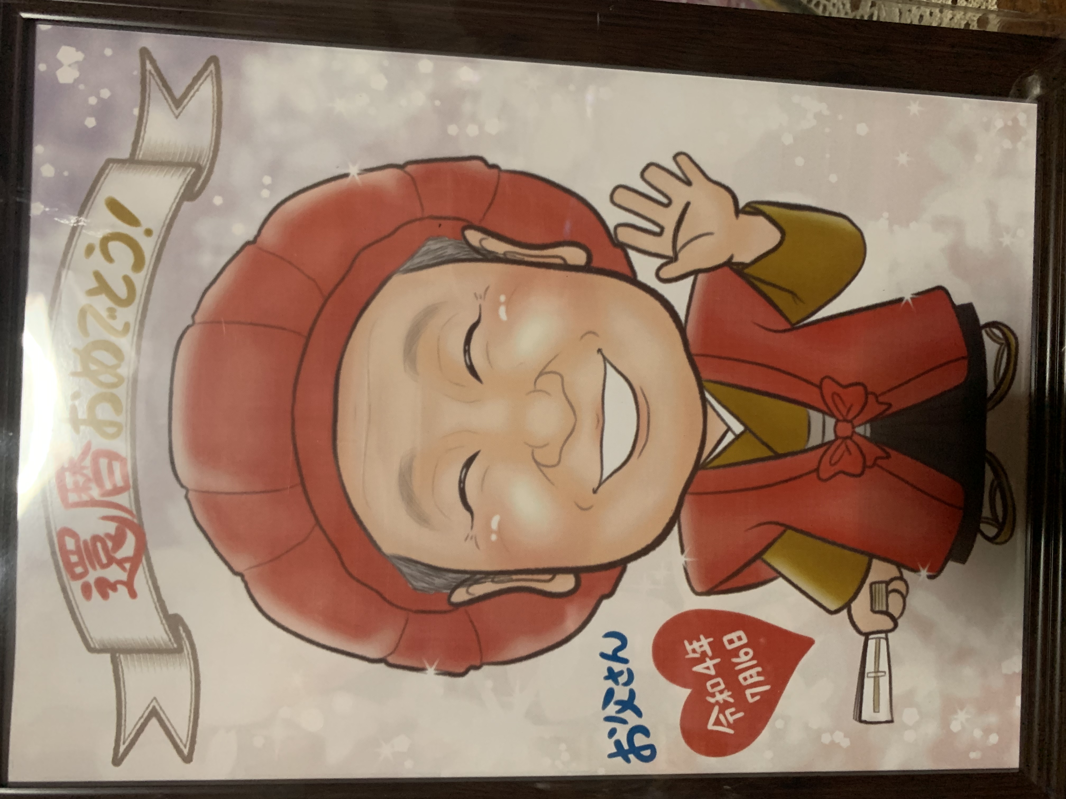 父親の生前の写真でも20年〜30年前の写真で、今生きてたらこんな感じだったのかぁと、こちらが感心してしまいました。結婚式前にずっと似顔絵見てて感動したのはここだけの秘密です笑