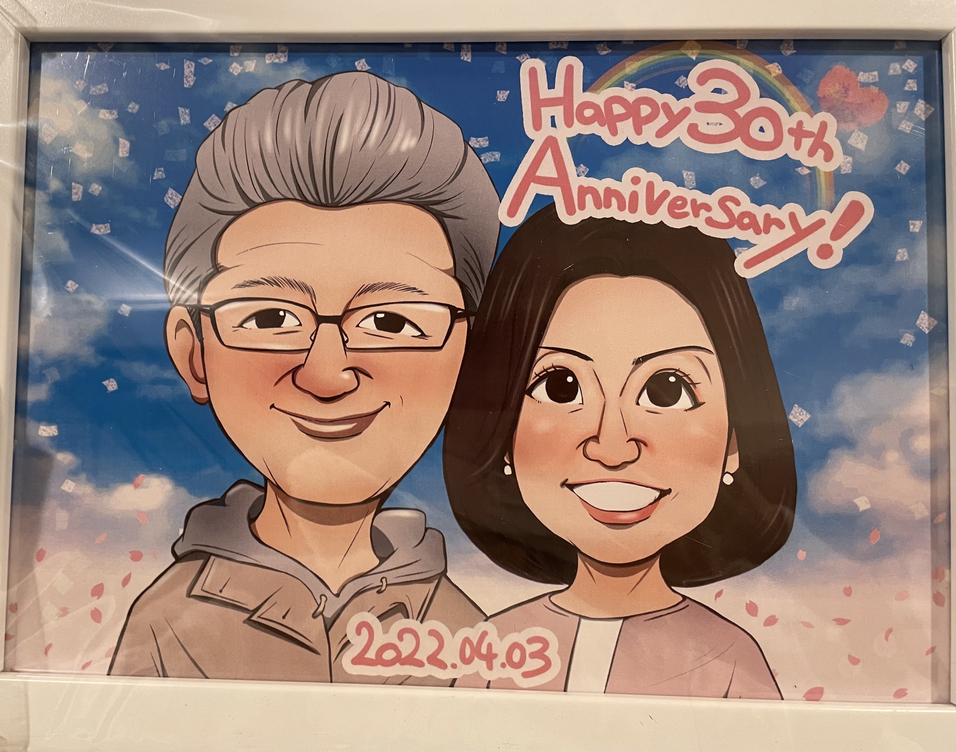 この度は、両親の金婚式のサプライズプレゼントとして、作成をお願いしました。出来上がりを見た、私を含め兄弟で似てると絶賛でした。似顔絵はもちろんですが、絵から見える2人の雰囲気も両親そのものでした。こちらの要望も思い通りにしていただき、思った通りでした。また、お願いしたいと思います。ありがとうございました。