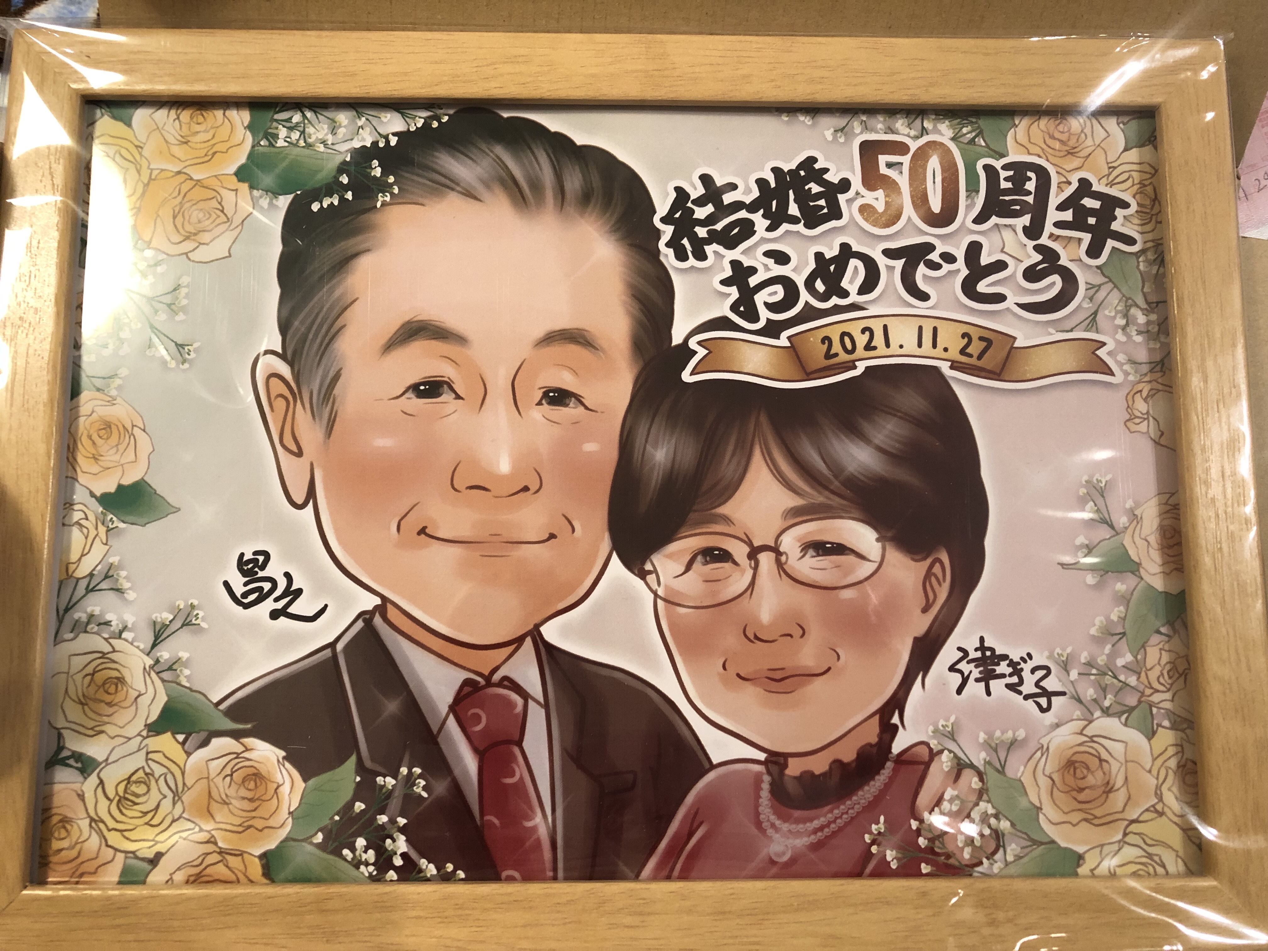 初めて利用させて頂きました。両親の結婚50周年の記念として描いて頂きました。素敵な仕上がりで、とても喜んで頂けました。本人たちよりも、若く可愛くて描いて頂き、それがよかったみたいです(笑)また、短い日程だったのですが、間に合わせて頂き助かりました。また機会があれば、利用させて頂きたいです。ありがとうございました。
