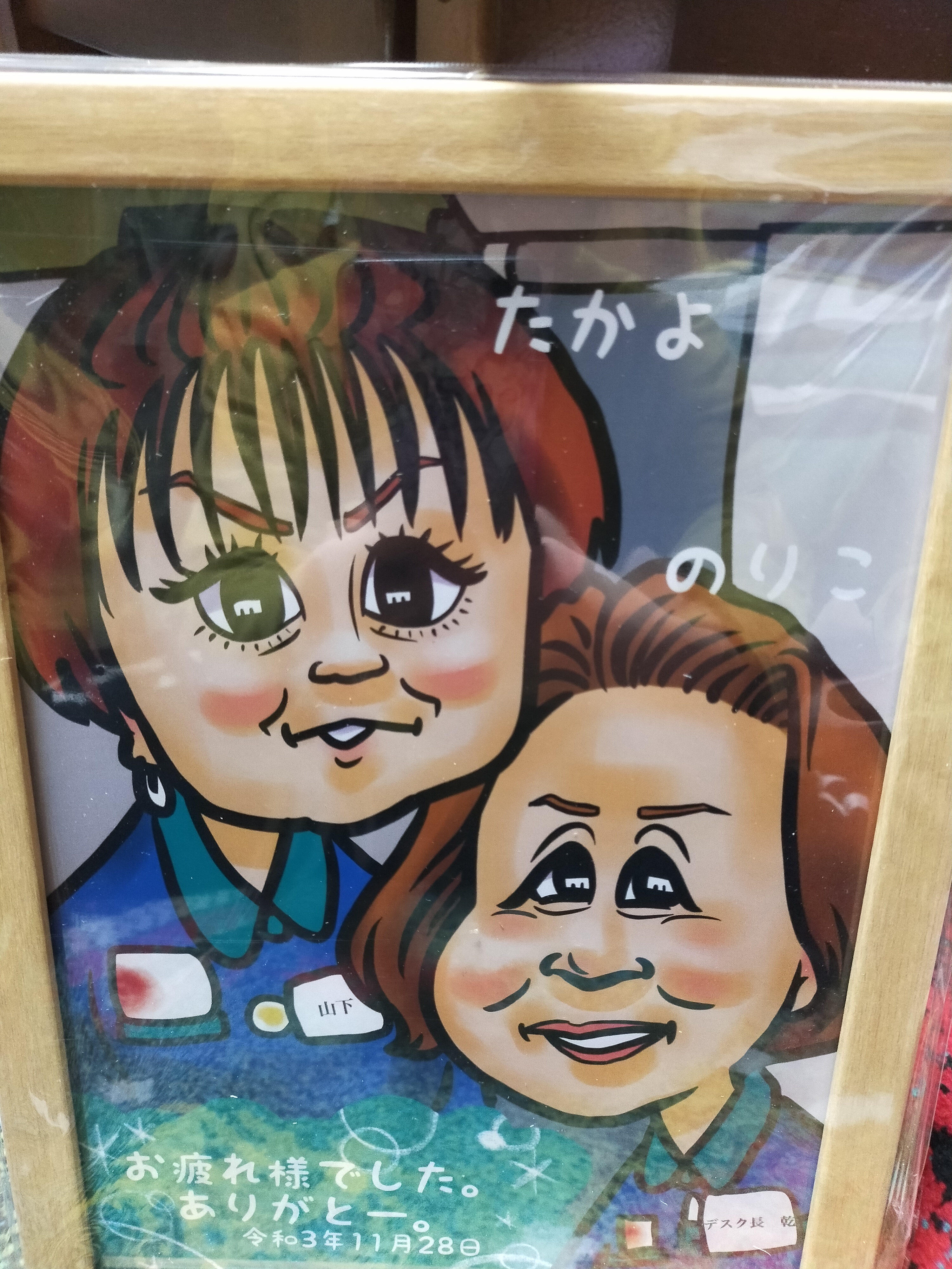 たいへん満足してます。こちらの注文にも答えてくれて。電話かけて来たスタッフの方はもひとつやったけど。上手く書けてると思います。退職祝いにお花以外にこんなんもらったら嬉しいと思う。漫画チックに書いてもらったので可愛く出来あがってる。また、機会があれば頼みたいです。他の似顔絵のところはちょっと高い。 今度は他の似顔絵師さんにも頼みたい。