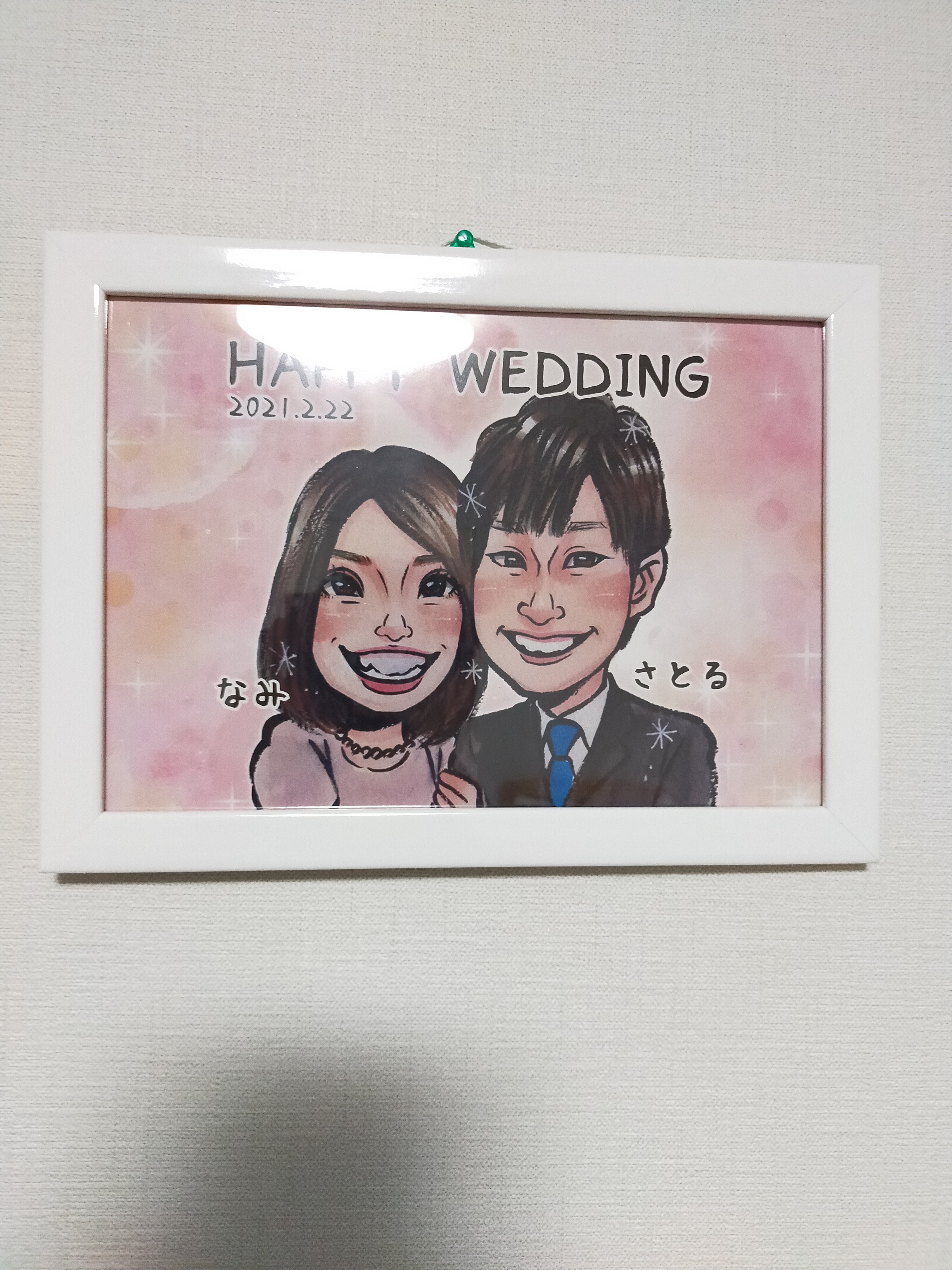 写真の当人達の特徴をとらえた理想的な似顔絵を描いてくださり、ありがとうございます。大変、満足しております。以前、別サイトで絵画を発注したことがあり、出来栄えが不十分なことがあった為、ネットでの似顔絵依頼は少し心配でした。ただ、届いた似顔絵は、とても優しく描かれた違和感のない素敵な作品でしたので大変、感謝しております。