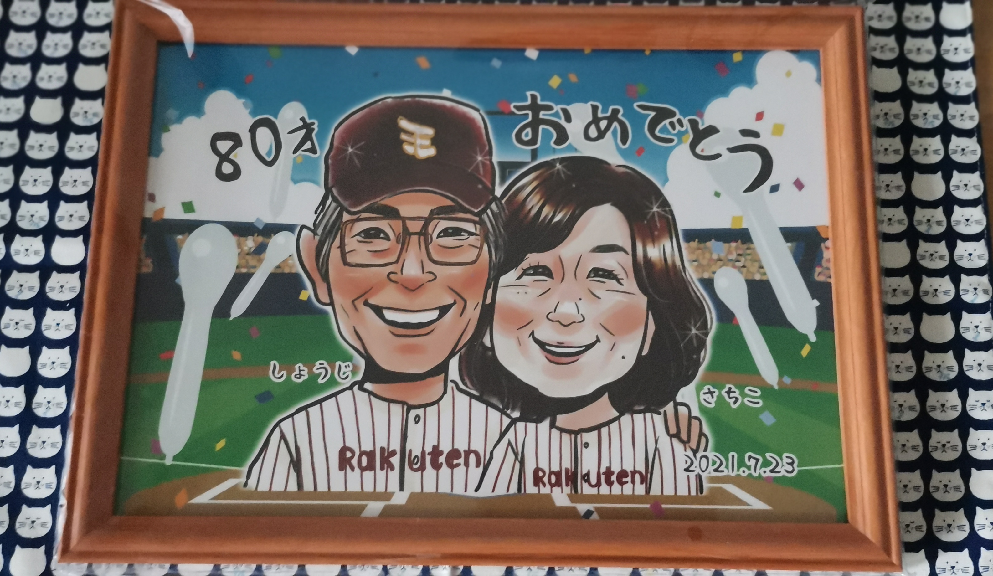 到着した似顔絵を開けた瞬間、感動して泣きました。 とても似ていて良い絵なんです。 父の野球好きが伝わって来るし、背景は注文以上のものでした。こんなに球場の雰囲気を書いていただきありがとうございます! 80歳という年齢で病気も沢山で病院に通っていてなかなか球場に行って応援できません。昔に行ってた事を思いながら絵を飾って貰えればと思います!