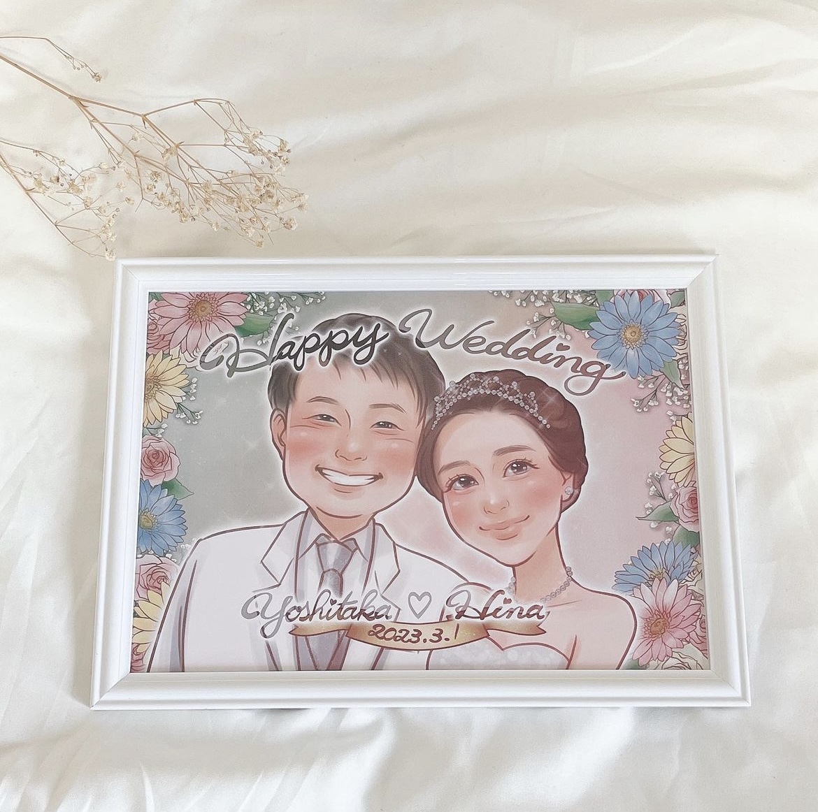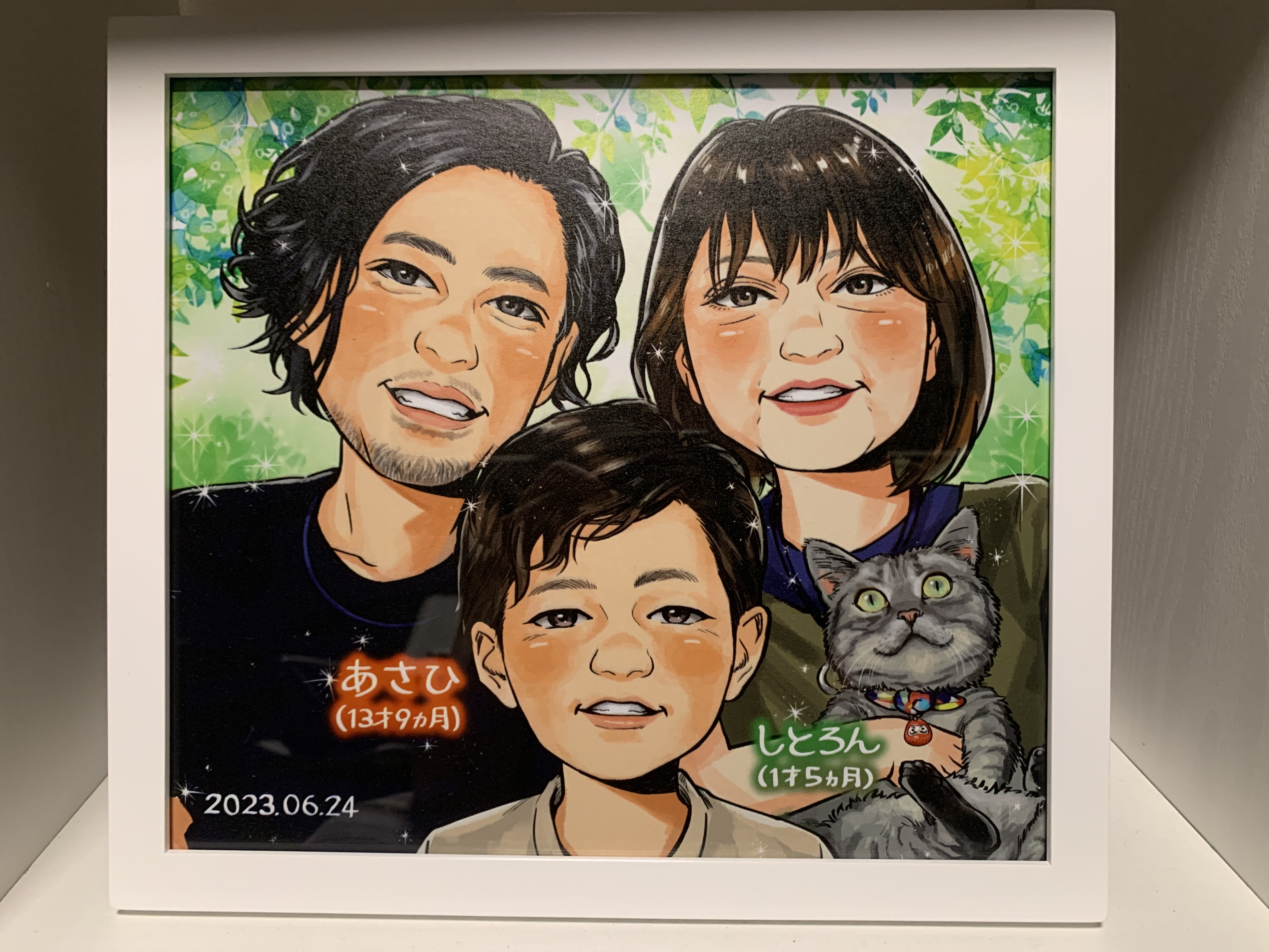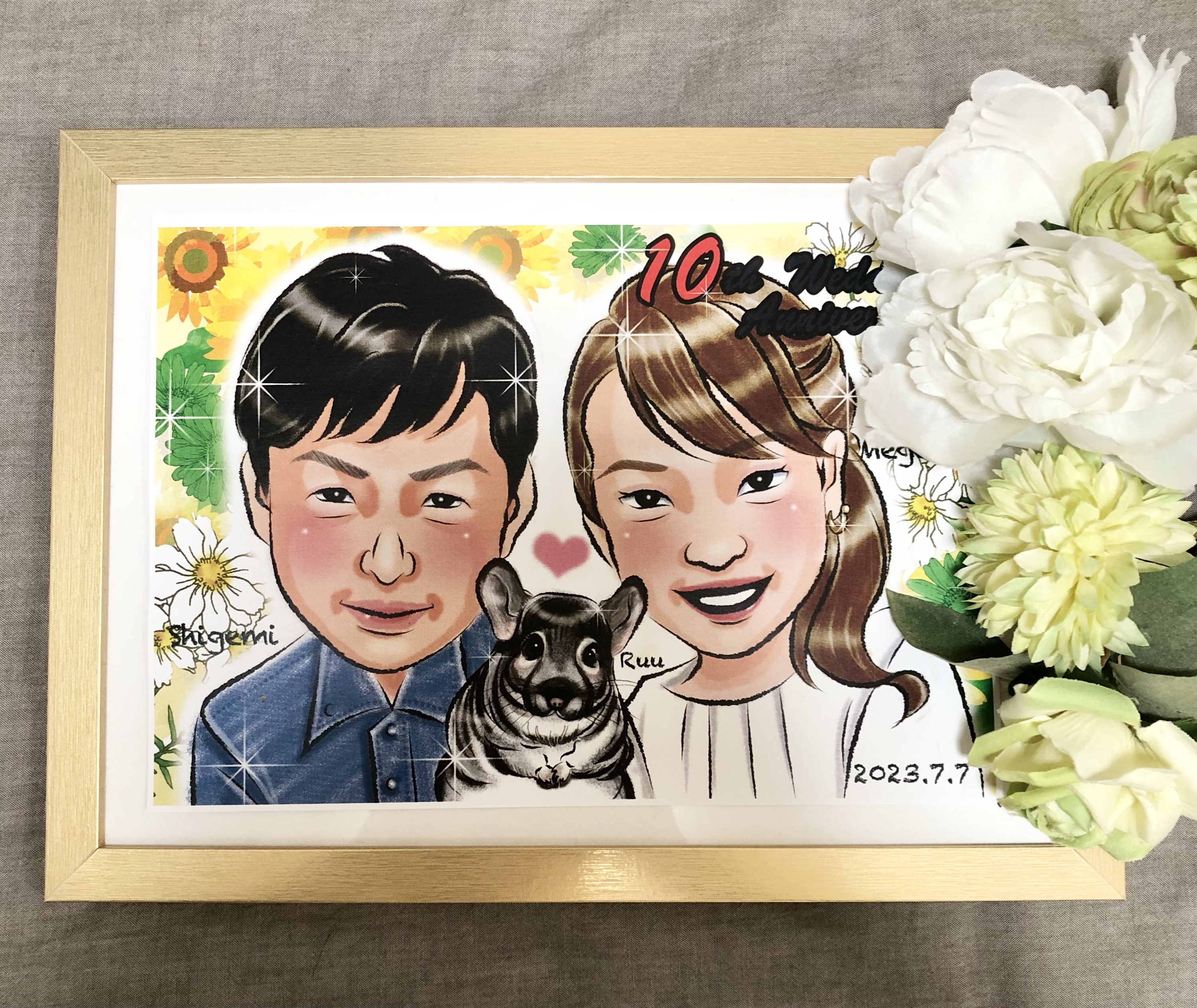 父の似顔絵と母の似顔絵を並べて飾ってくれていますが、バランスも考えて制作していただけたのでとてもいい感じです!